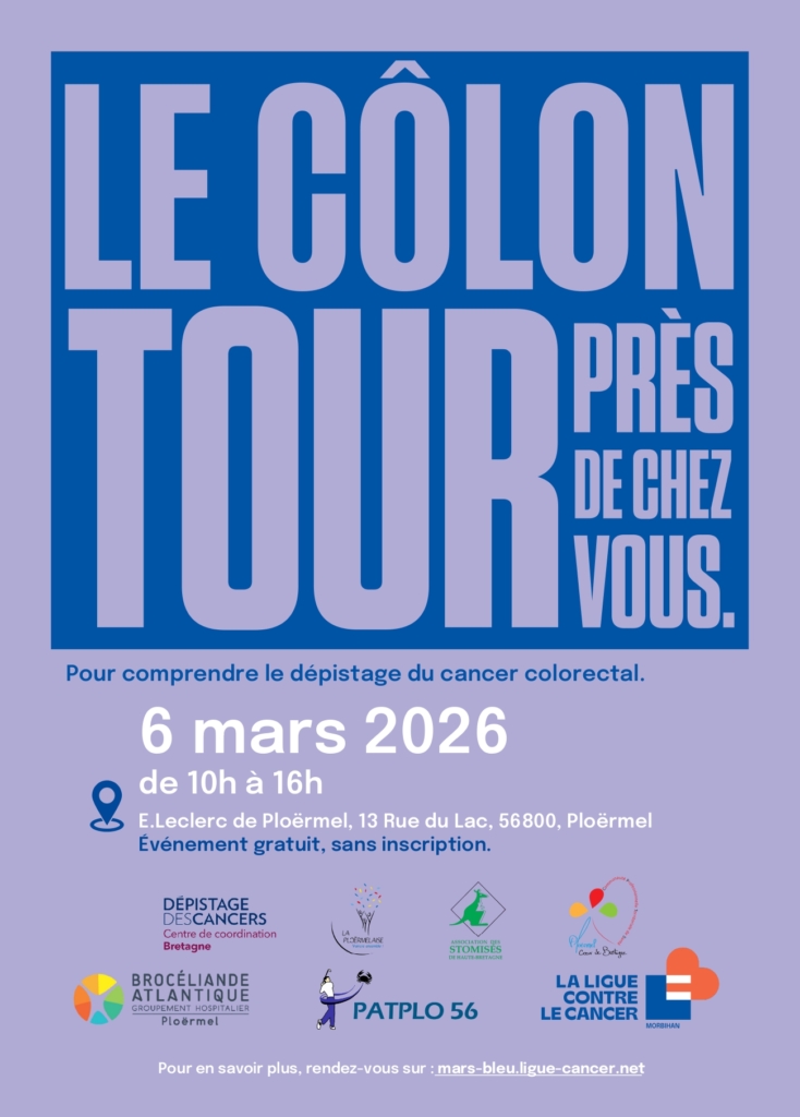 Dans le cadre de sa mission de prévention, de diagnostic et de soins, le Centre Hospitalier de Ploërmel participe au COLON TOUR® lors de Mars Bleu 2026, une opération de prévention, d’information et de sensibilisation au dépistage organisé du cancer colorectal.